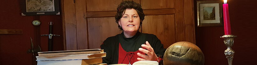 Ich Chlodhild, die Fränkin aus dem 8. Jhdt., erzähle in fränkischer Mundart, teils aus eigenen Werken oder aus der Sagenwelt. Ich tue dies stets mit viel Spielwitz, Ironie und einer Prise schwarzem Humor. Ich zeige, wie man den Franken sehen muss. Freuen Sie sich auf eine Mischung aus Tiefsinn und Eigensinn von fränkisch trocken bis humorig lustig.